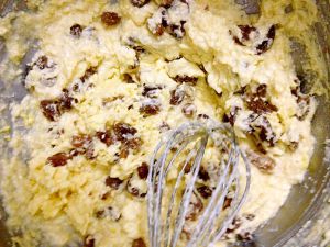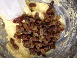 加葡萄干,加入侵泡过葡萄干的水,如果加牛奶要把葡萄干水淋干,加水或者加牛奶都是20克