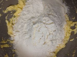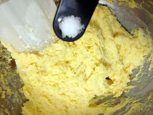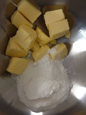 黄油室内温度软化,和糖粉一起搅拌至乳白色