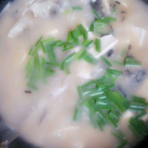 鱼熬好加豆腐大火熬三分钟,后再加点黑糊椒和鸡精,放点葱花和香油就可以出锅了
