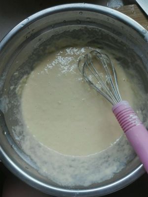 把鸡蛋面粉混合搅拌至无颗粒状。
