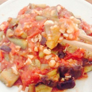 锅烧热倒油加蒜 炒香后下西红柿翻炒,西红柿略软后加入煸好的茄子块翻炒直到炒熟