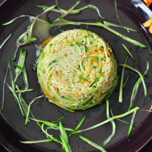 将金针菇,黄瓜丝,胡萝卜丝混合,放适量芥末,盐,醋,橄榄油或麻油拌匀即可