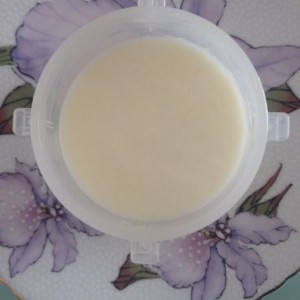 倒入容器,隔水加热15分钟。拿出待凉起膜,在膜边上划个口子将牛奶倒出。