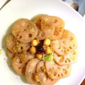 煲3小时。看个人需求如果想糯糯的可以再久些。高压锅就无需这么久了。好后拿出冷后切片装盘。撒上干桂花。浇汁。