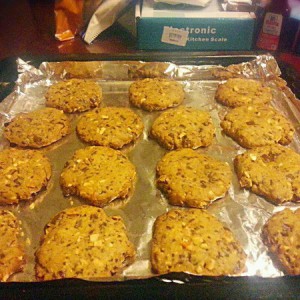 用手抓一小块面糊排在垫了锡纸的烤盘上,放入预热好的烤箱里,190°烤至表面金黄。