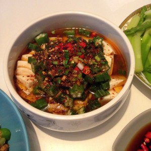 秋葵洗净,水烧开以后焯3分钟以后捞起来放凉,(焯的时间太长了秋葵容易太软影响口感)切小段。