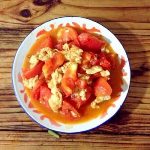 油烧热,倒入切好的西红柿,加点糖,食盐,在倒入鸡蛋翻炒若干