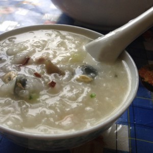然后倒入之前煮好的稀饭、剩下的皮蛋,煮2-3分钟左右