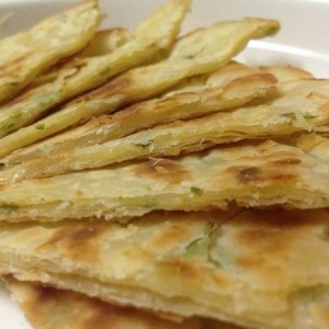 均匀的洒上调味料,葱花,洒好之后最好用擀面杖擀一下,再均匀的抹上一层油