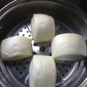 醒面结束后就可以上锅蒸馒头了,记住用冷水下锅蒸,15-25分钟。蒸好后不要马上开盖子,因为冷空气马上进去,有的馒头会回缩。检验馒头蒸熟的方法是,用手沾点冷水,防烫,轻压馒头,如果会马上弹回,说明熟了。