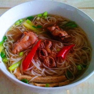 拿一面碗,碗里放生抽、猪油、鸡精,小葱。将煮沸的面汤倒入,将面捞进汤里即可,简单方便又美味。