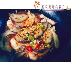 这就是蒸好的茄子,是不是看不出形状了。其实当凉菜吃,现在把料汁浇进去就完成啦。可是我中午吃,还是决定炒一下。
