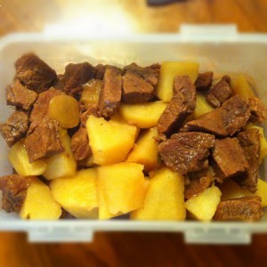 土豆切块,用微波炉高火约4分钟(土豆难烧熟,先弄熟得了)