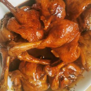 倒入老抽翻炒会 加水没过鸭腿闷煮半小时