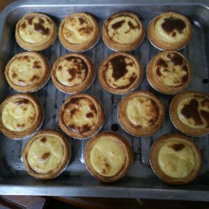 准备好所需材料!蛋挞皮摊开了放烤盘上解冻备用!