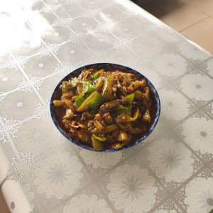 放入调制好的料汁,翻拌均匀,待汤汁粘稠,关火