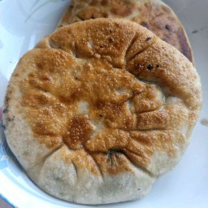 锅里放油,油热。放饼。小火,一定要小火!不然里面煎不熟。