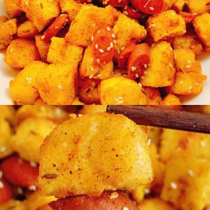 能吃出烧烤味的孜然火腿馒头丁