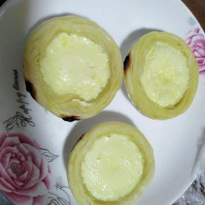 将蛋液倒入蛋挞皮中至8分满,放入盘中,盖上保鲜膜,(保鲜膜记得用牙签戳出小孔,用于排气)放入微波炉中,微波加热3分钟,大功告成
