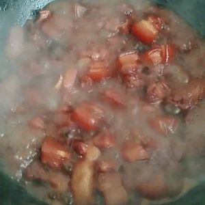 炖煮大概一个小时左右,用筷子插下,看看如果筷子很容易插进去,那么就是炖好了。然后大火收汤即可。