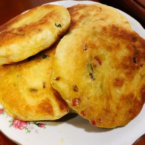 火腿、葱、辣椒末一起倒入发好的面里面,搅拌