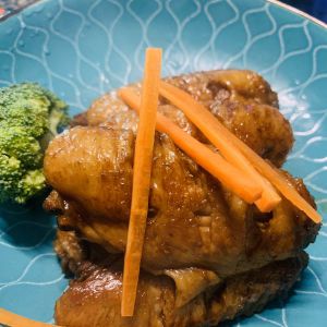 可以在鸡翅上划两刀,容易入味,如果说急着吃可以划的深一点!但容易没形。不急一点口就行!凉水下鸡翅,放料酒,姜,葱段!去腥!