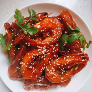 调汁(将番茄酱,糖,醋,盐,淀粉,生抽,清水混和好)点火(小火),加一点食用油,将调好的汁倒入锅中,烧开,把炸好的虾倒入锅中,混匀,出锅