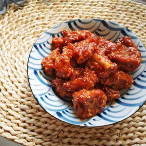 另取锅放入碗汁,烧开,倒入排骨。使其全部均匀裹满酱汁,倒入白芝麻,翻拌均匀。
