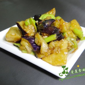 下入炸好的土豆块,茄子块和青辣椒翻炒几下