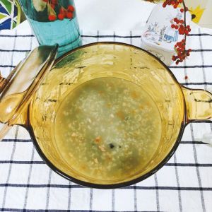 所有的料全部入锅中,大火烧开,小火40分钟。中间不断搅拌,撇除浮沫。出锅前撒一点儿香葱香菜末,一点盐,点一点香油就好了。味浓料好老少皆宜。