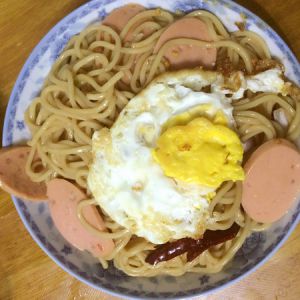 这种是专门做炒面的面,超市都会有卖的,一般两三块钱的就够两个人吃了,这种面可能会有点黏,煮的时候一定多放水,勤搅动,以免粘锅。煮好后放进盘子里,有人喜欢在面里滴点食用油,免得粘在一起,或者涝的时候也可以不用把水淋的太干,也可以避免粘在一起的