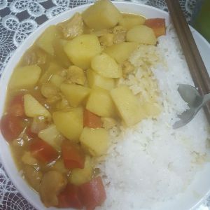 加土豆,洋葱,胡萝卜翻炒,加盐,添热水炖煮