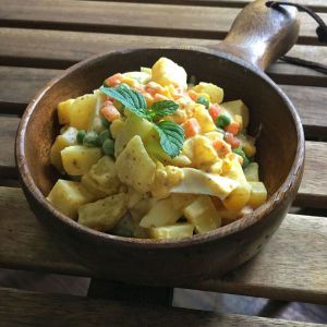 土豆1个、鸡蛋2个、什锦菜50克、色拉酱适量