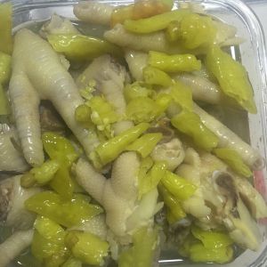锅中放入料酒,花椒,姜片,倒入鸡抓,沸水煮6至8分钟
