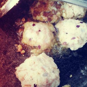 加入洋葱 培根 以及各种调料 其实我还放了少许西红柿泥喵 搅拌均匀