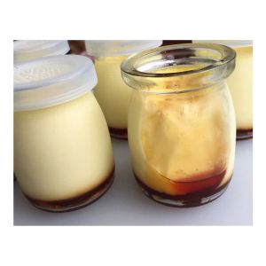 倒入准备好的布丁杯内 冷却 再倒入先前准备好的布丁糊。 然后 隔水法 水不要低于布丁玻璃杯外层一厘米