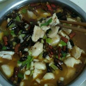 一汤匙油烧热,放入干椒与花椒爆一下!直接浇在鱼片上即可!
