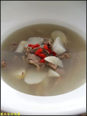 放入山药块,炖至羊肉酥烂加盐,即可。