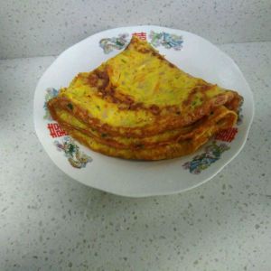 准备食材,南瓜切丝,(我的刀法太差了)培根,葱切了,咸蛋黄撵碎。