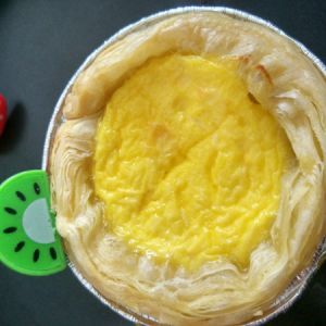 将冷冻保存的蛋挞皮事先拿出室温解冻