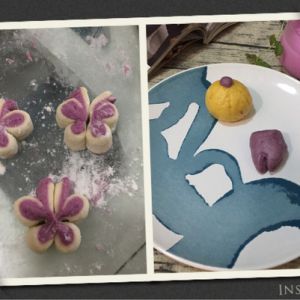 包紫薯球 戳出纹路 压的不行哦 蒸出来就没花纹了 加个小扭 小南瓜
