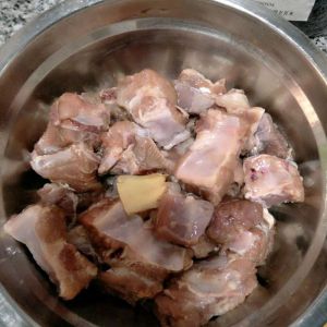 准备一盘排骨 根据家里人数定量,(就我和老公在家 买了一根大的 一斤多点)