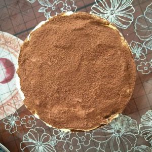 马斯卡彭倒入盆里,按压均匀,有颗粒感,倒入蛋黄糊,硅胶铲子搅拌至无颗粒感,打发淡奶油,由于和芝士糊质地差不多,一次性全倒入芝士糊,搅拌均匀