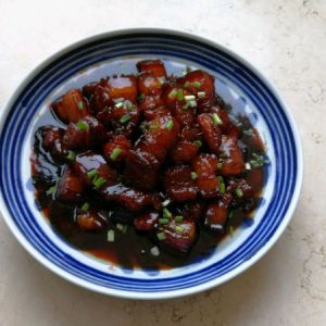 把炒好的糖色,倒入砂锅,小火炖一个小时左右。如果砂锅里液体太少,没有略略没过五花肉的话,就再补一点水