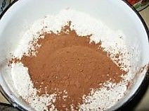 把可可粉、低筋面粉搅匀,过筛。