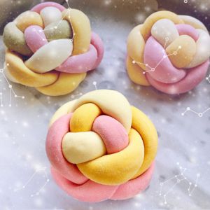 南瓜蒸熟压成泥过筛,苋菜开水煮一下留汁,青菜汁或抹茶粉