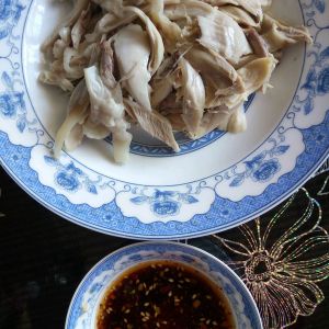 凉水加姜片,料酒,放入鸡腿或鸡胸肉,大火煮开后再煮5分钟,关火焖10分钟。