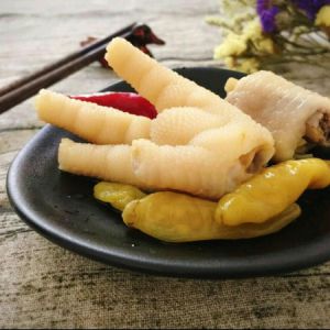 鸡爪洗净,剪掉指甲。鸡爪剁成小段,好入味