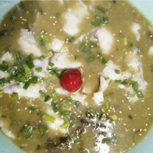 在锅里放入少许的油,放入酸菜和鱼骨头,翻炒4-5遍。加入500ml的水。放一勺盐,两勺味精,少量的鸡汁和白胡椒粉,放入50ml白醋,水烧开2-3分钟把鱼骨头和酸菜捞出来,放入鱼片,等水再开,用锅铲推下鱼片,30秒起锅。