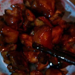 把炸好的地瓜放入煮沸地锅中,用器皿慢慢搅拌直到糖完全吸附到地瓜上。
